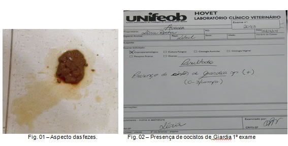 Exame Complementares – Coproparasitológico: positivo (+) para a presença de cistos de giárdia (fig. 02).
