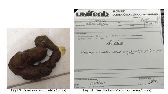 Após quatro dias as fezes de todos os animais estavam normais (fig.03).